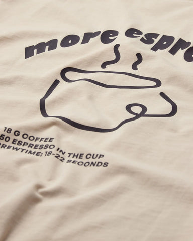 Dit shirt is een comfortabele, casual T-shirt met een minimalistisch koffiekopje op de borst en een grote print op de rug met de tekst “More Espresso”. Perfect voor koffieliefhebbers die hun passie subtiel willen uitdragen.