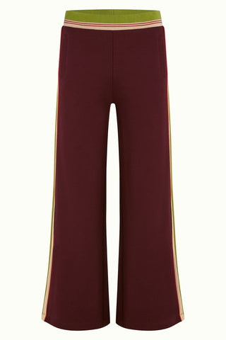 De King Louie Sweat Pants Daytona in Porto Red combineert retro flair met ultiem comfort. De sportieve broek heeft een wijde pijp, elastische tailleband met streepdetails en kleurrijke biezen langs de zijkant in groen, ecru en rood. Dankzij de relaxte fit is deze broek perfect voor casual dagen, een weekendje weg of een stijlvolle athleisure-look.