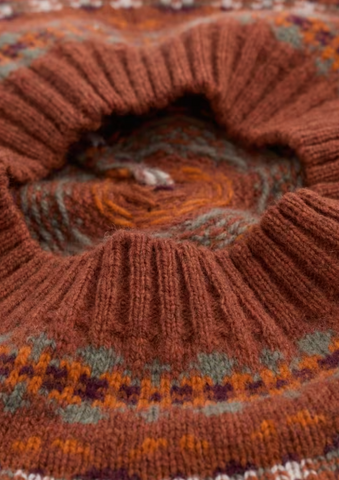 Geef je winteroutfit een vleugje retro met de Early Bird Beret van Seasalt Cornwall. Deze lichtgewicht, maar warme gebreide baret is uitgevoerd in een vrolijk Fair Isle-patroon in terracotta-, oranje- en blauwtinten. Het zachte merinogaren voelt luxueus aan en zorgt voor een comfortabel draaggevoel, terwijl de gerecyclede vezels extra stevigheid geven.